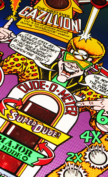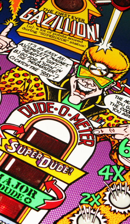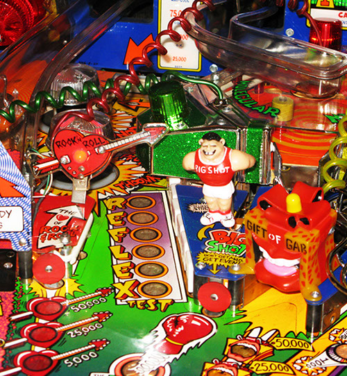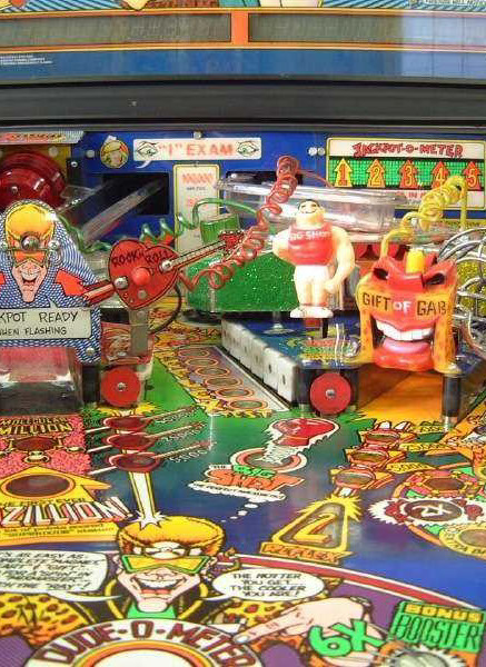 Further gameplay features include the Excellent Ray to start multiball, Big Shot - a bully figure that insults the player, the Molecular Mixmaster - a spinning disc with a rubber post on it, surrounded by targets and a Gazillion point shot with scoring that potentially multiple millions of points